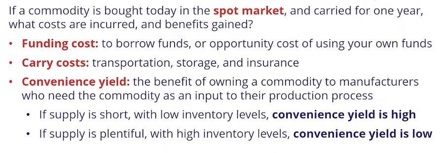 80.2 If a commodity is bought today in the spot market, and carried for one year, that costs are incurred, and benefits gained?
