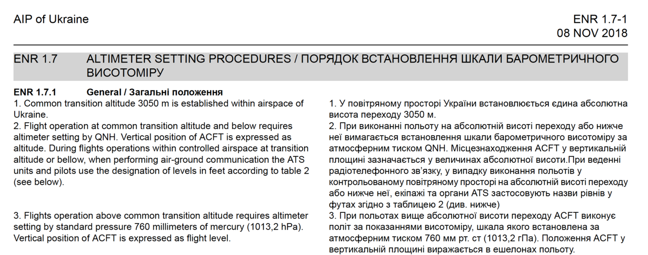Reference AIP ENR 1.7 - Altimeter Setting Procedures