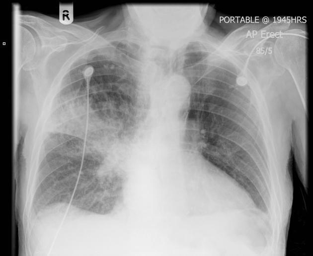 (right lower lung consolidation)