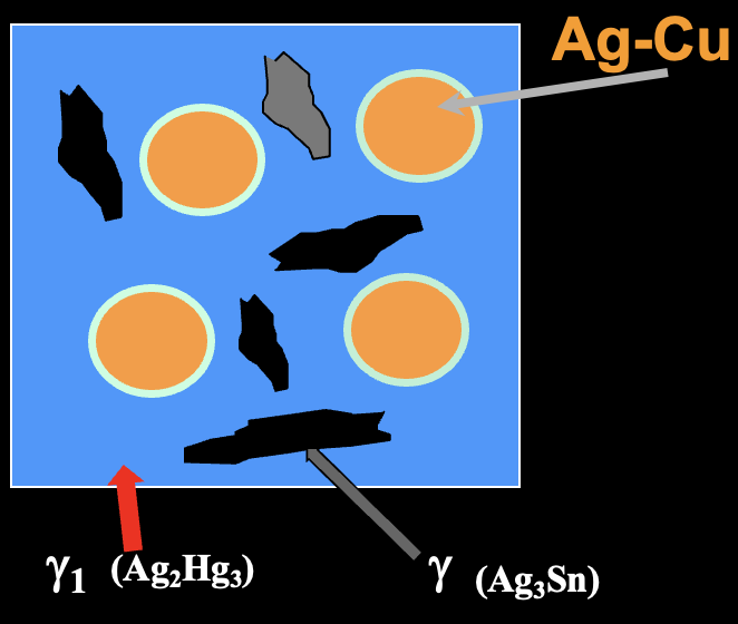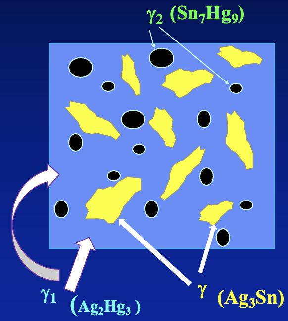 Ag2Hg3(γ1) + Sn7Hg9(γ2) is the amalgam matrix