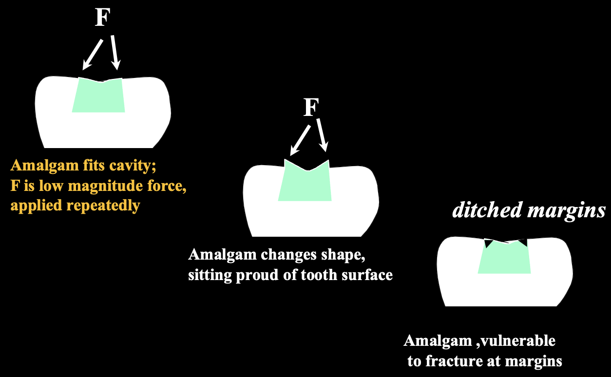 thermal diffusivity - high so when a thermal stimuli is applied, amalgam’s temperature rises quickly and can damage the pulp