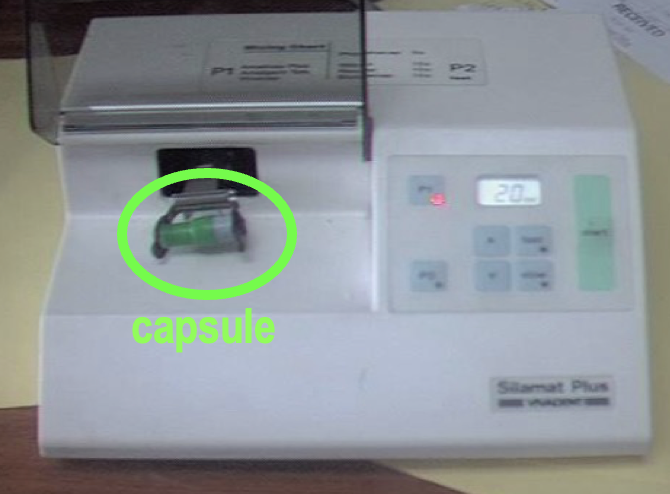 * capsule is loaded with amalgam powder and liquid mercury separated by a membrane