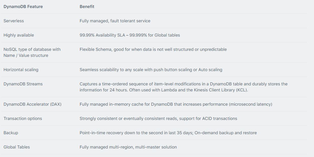 DynamoDB Features ?