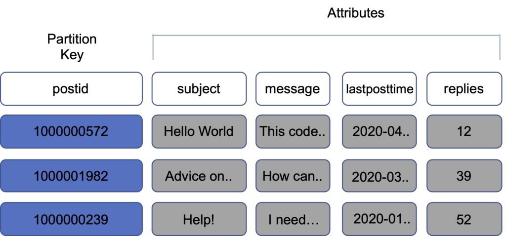 Tables are a collection of items and items are made up of attributes (columns).