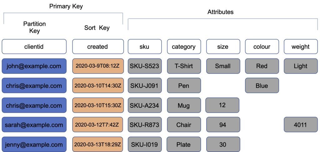 Use composite attributes – e.g. customerid+productid+countrycode as the partition key and order_date as the sort key.
