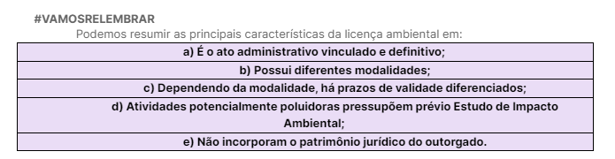 A licença ambiental é um ato administrativo vinculado e definitivo de natureza sui generis, uma vez que comporta modificação, suspensão ou cancelamento posterior em caso de surgimento de risco ambiental após sua concessão.