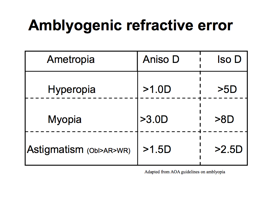 Memorize this chart about Ametropia and Amblyopia