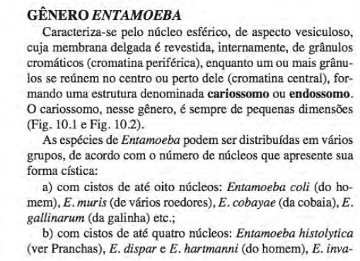 Grupos do gênero entamoeba e critério para a sua divisão(coli, entamoeba, díspar)