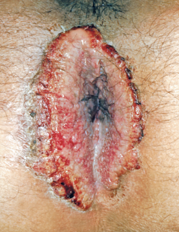 Manifestaciones en la piel de una infección por Entamoeba histolytica. Ubicadas principalmente en las regiones perianal y genital, las lesiones consisten en úlceras destructivas, dolorosas, de evolución rápida; en ocasiones, son de transmisión sexual.