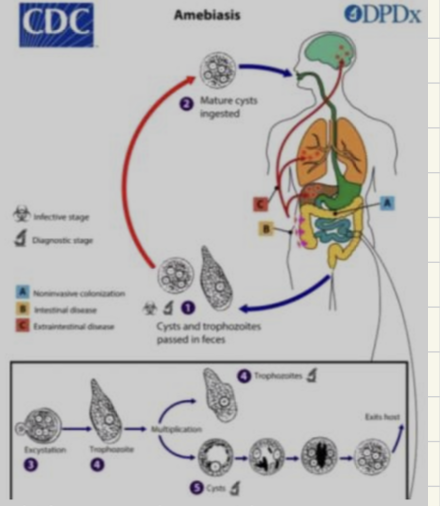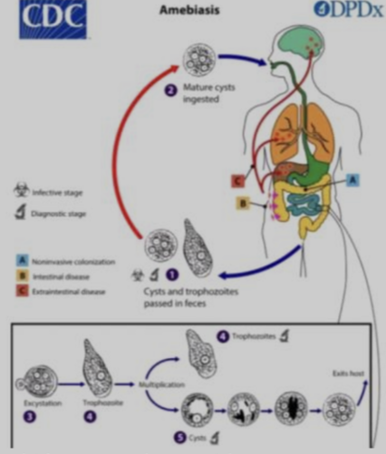 Cuál es el medio de trasmición inicial de las AMEBIASIS?