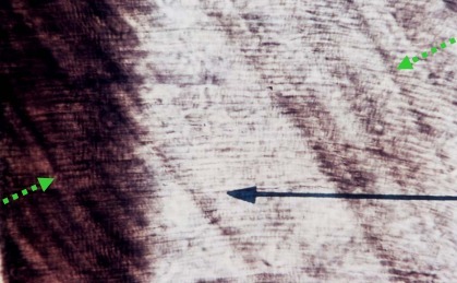 an optical phenomenon produced by changes in direction of the enamel rods. Seen only in ground histologic sections viewed by reflected light
