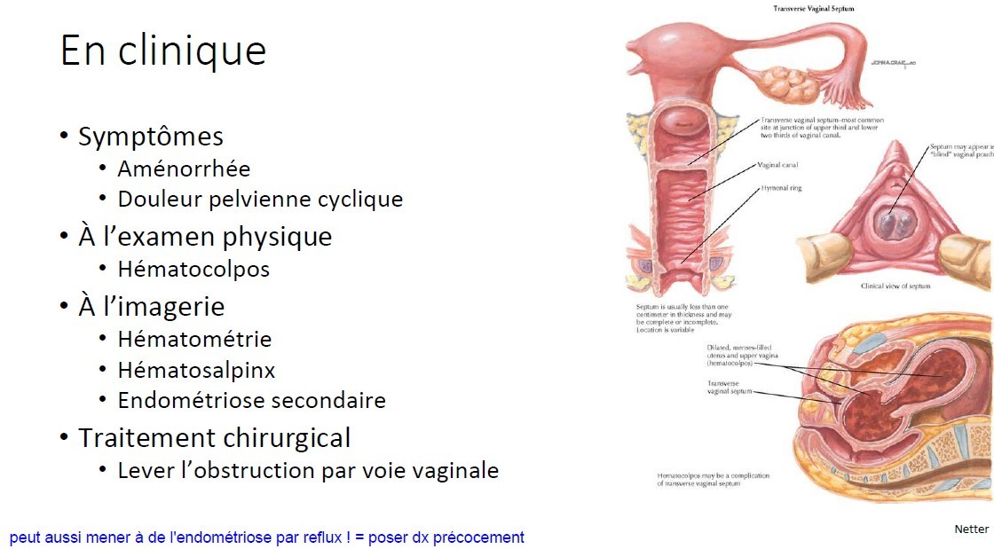 Qu’elles sont les causes d’aménorrhée du à une anomalie du tractus génital inférieur ? (4)