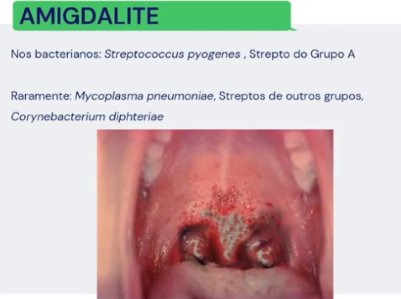 Principais agentes bacterianos na amigdalite: