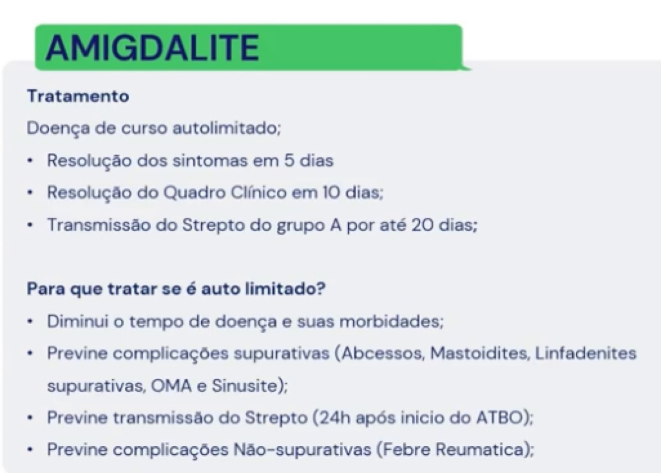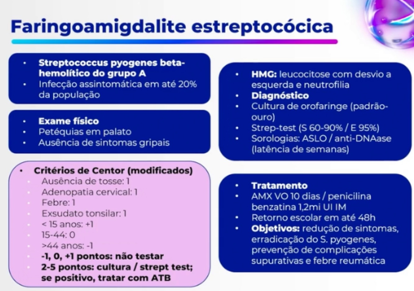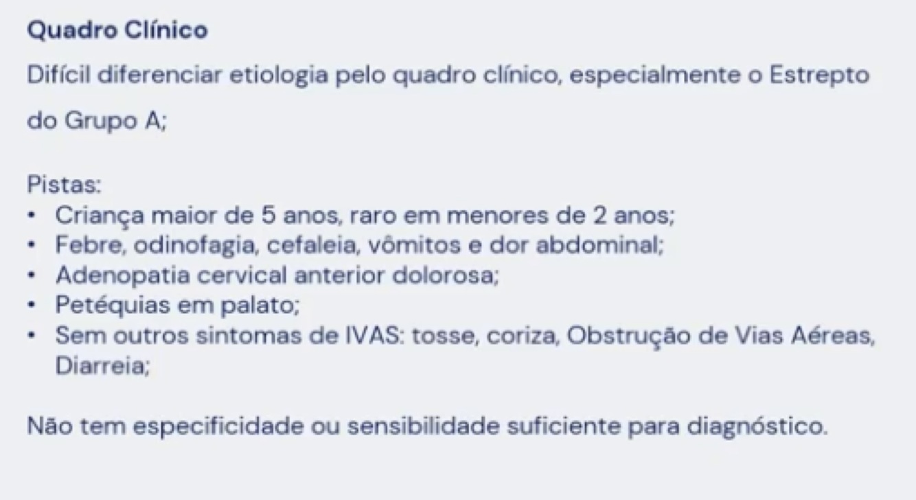 Resumo da faringoamigdalite estreptocócica: