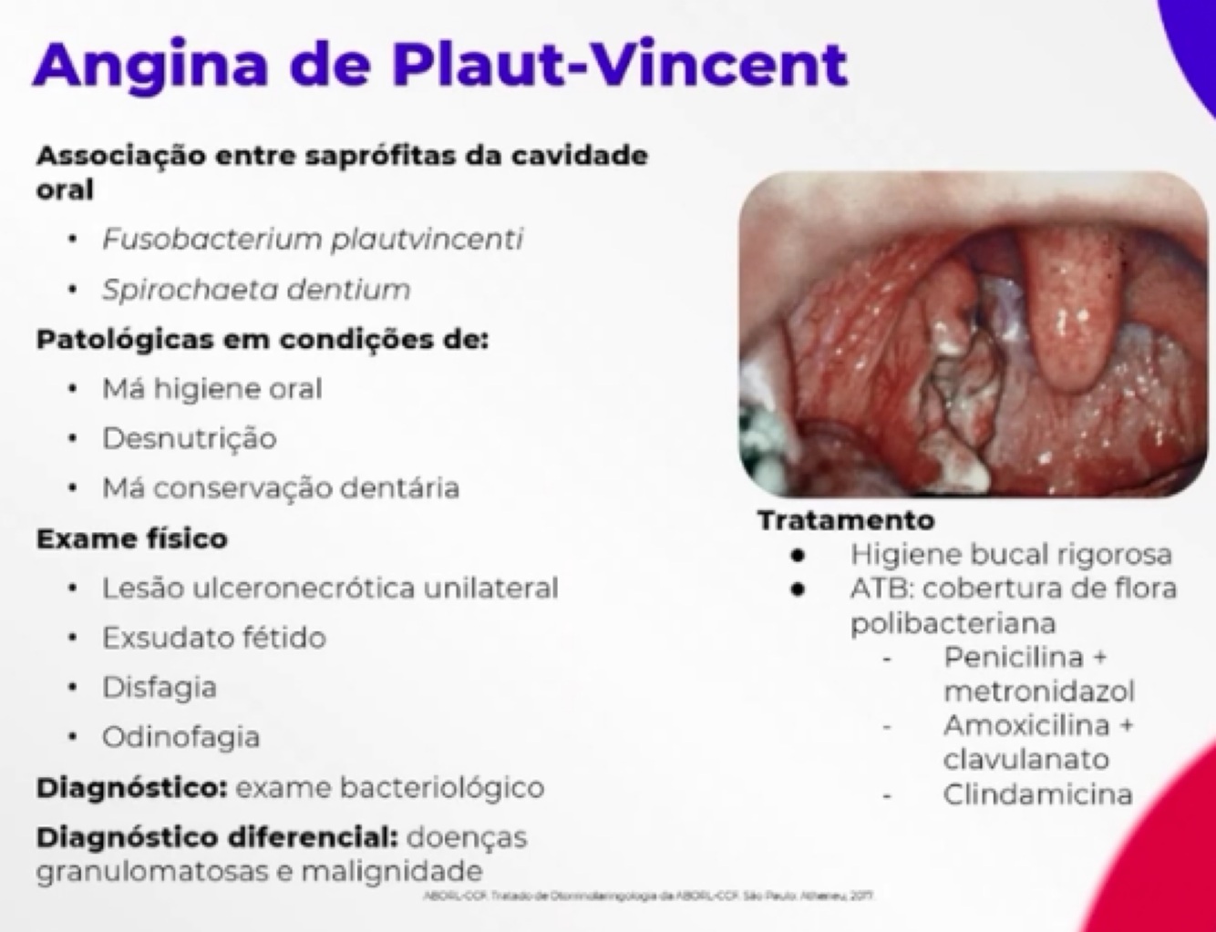 Características e Tto da Angina de Plaunt Vincent: