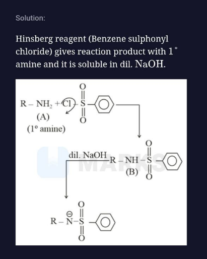 the product of 1 degree amine hinsberg test is soluble in what?