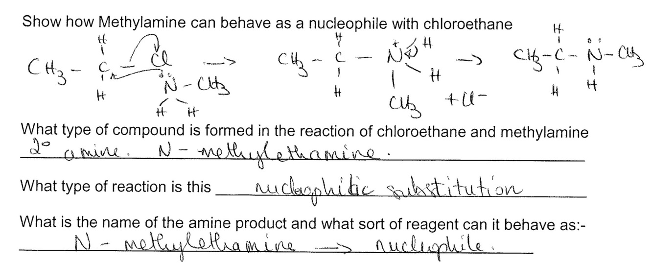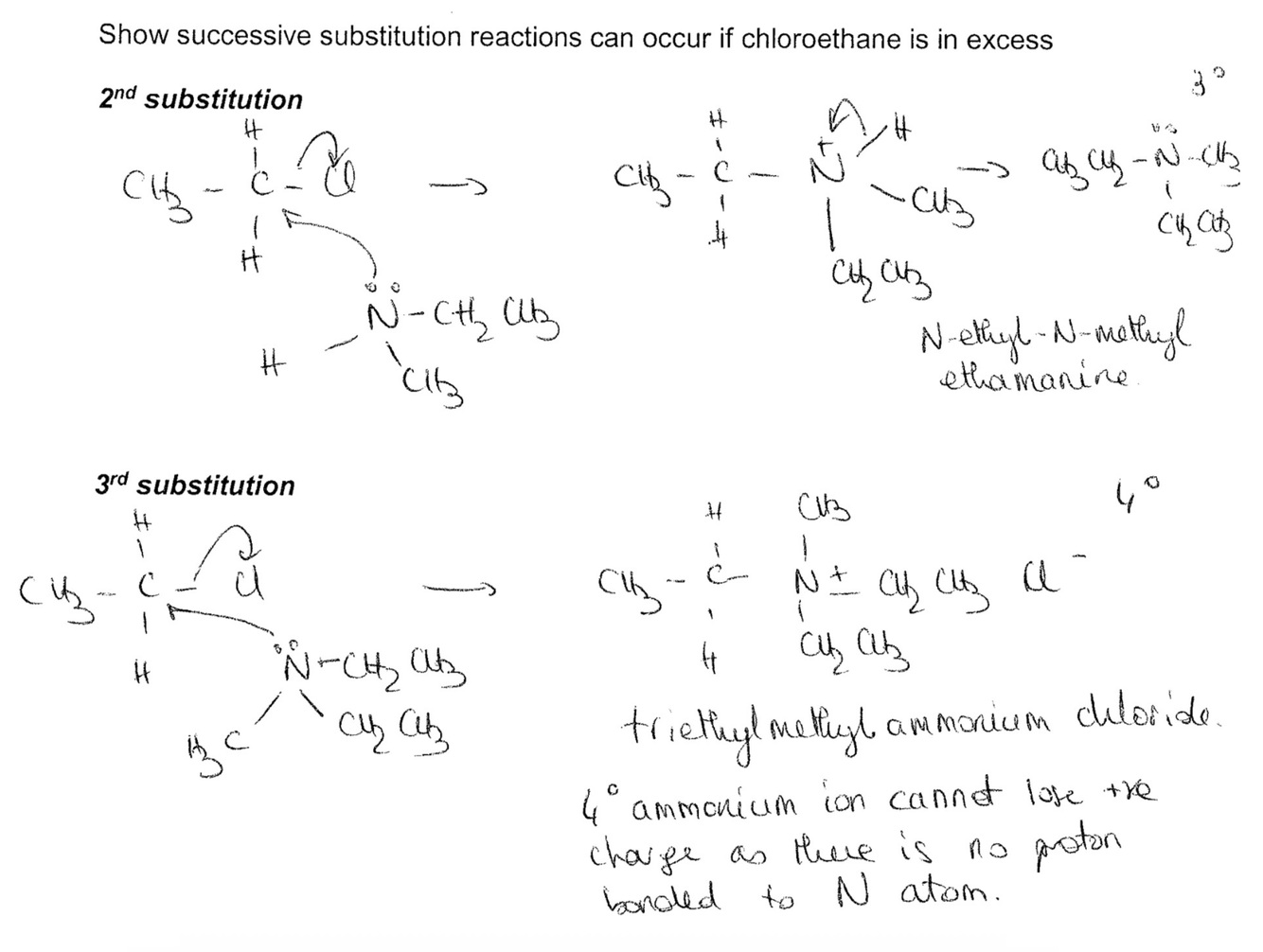 How do amines undergo a second and 3rd substitution- e.g. chloroethane and methyl amine