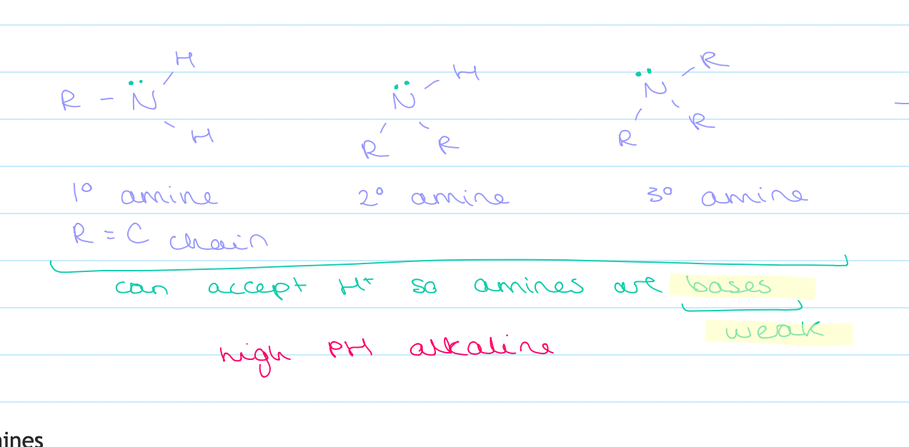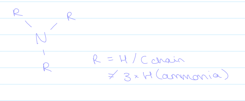 draw out what primary, secondary and tertiary amines would look like