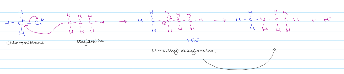 show the mechanism for a haloalkane and primary amine reaction