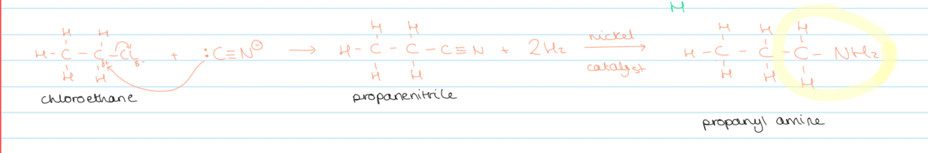 make nitrile then reduce it (add lots pf H’s)