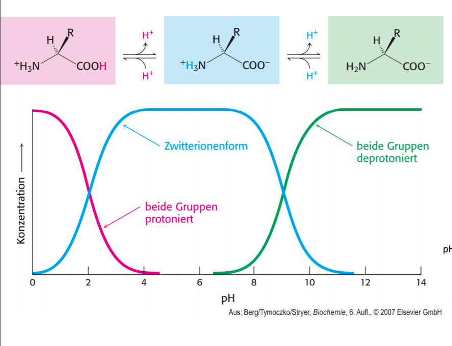 Welche Protonierungszustände haben Aminosäuren und welcher kommt bei physiologischen Bedingungen vor?