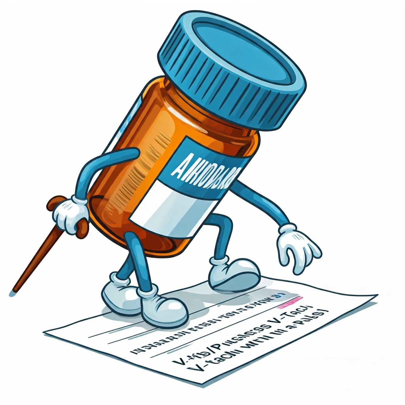 V-tach w/ pulse: 150mg IV/IO drip in 100ml NS over 10 min.