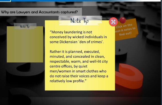 What is the quote from a British MP concerning money-laundering and accountants and lawyers?