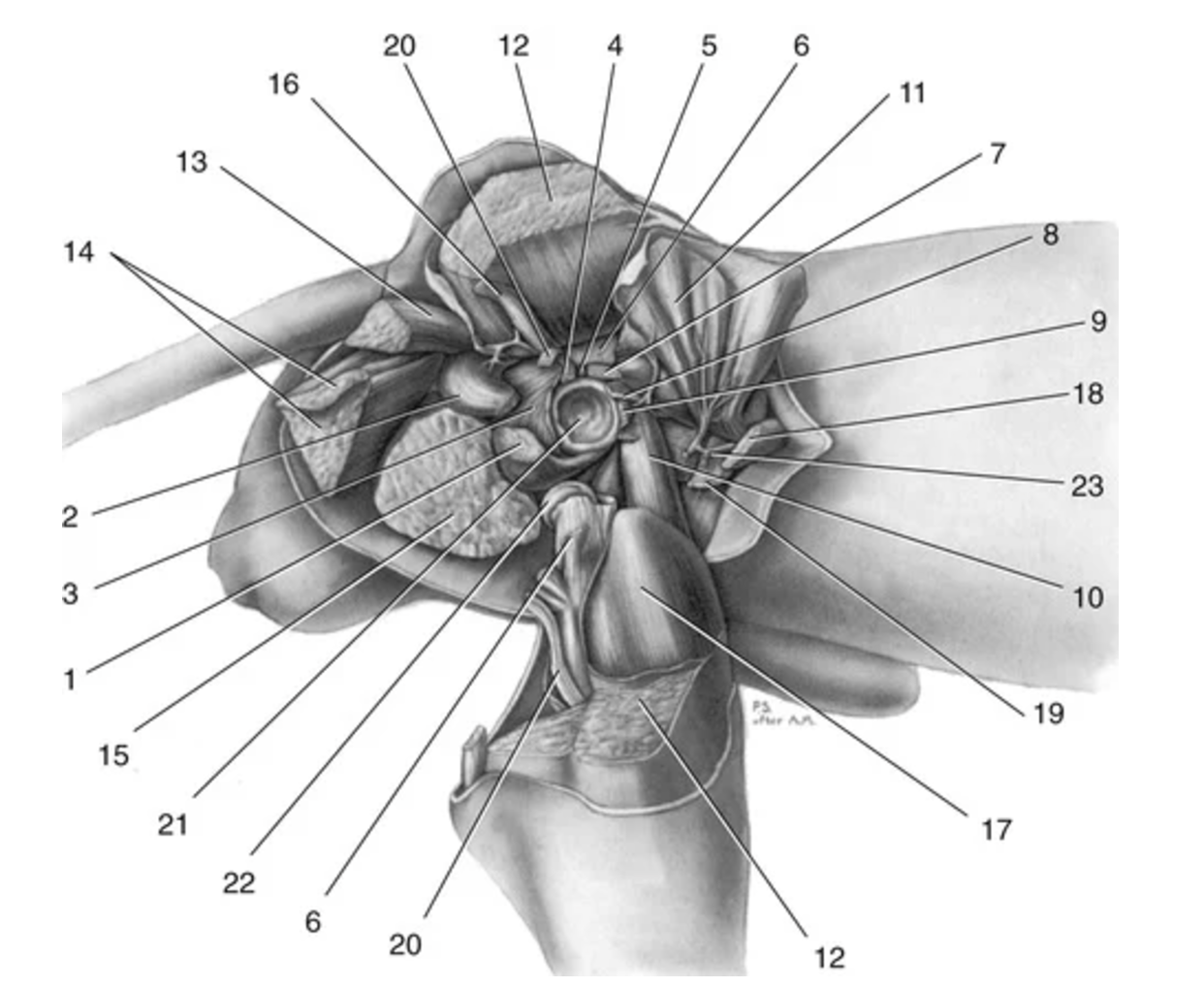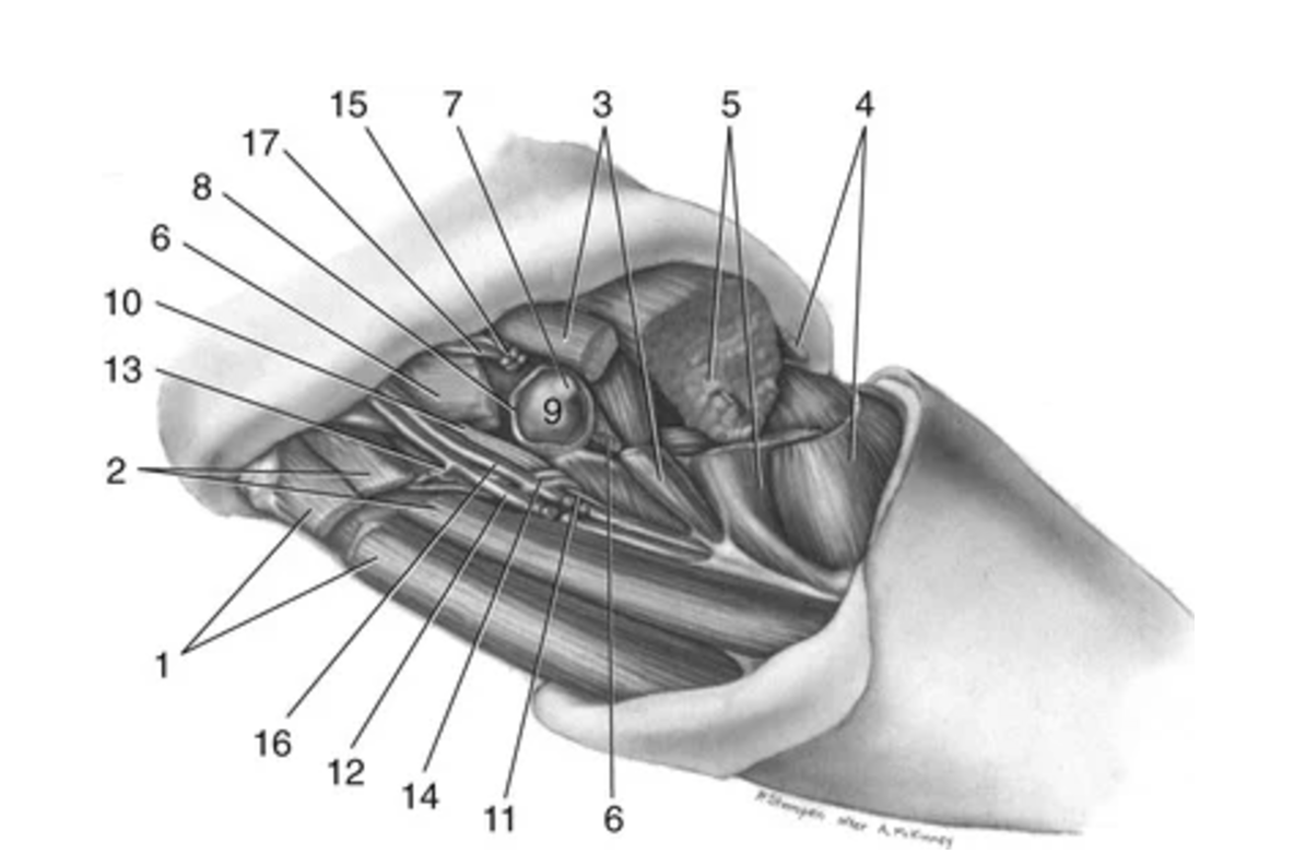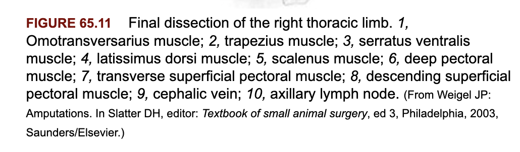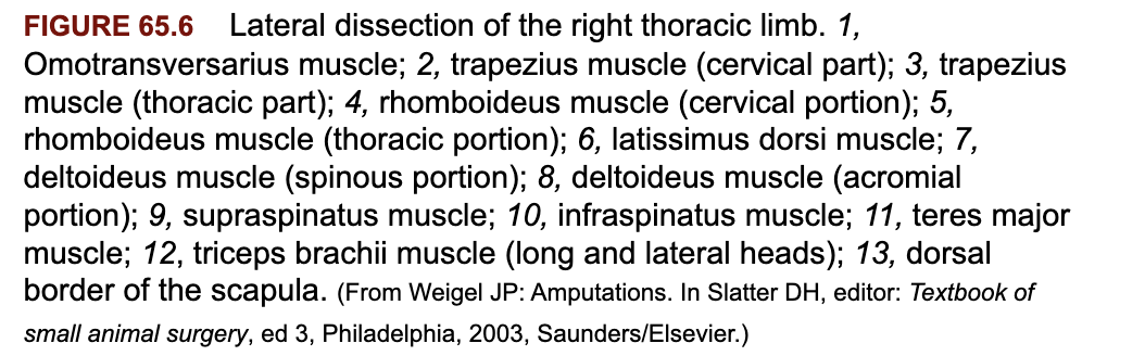 Following partial removal of the thoracic limb the scapula muscles will also atrophy which may predispose to pressure sores over the acromium.