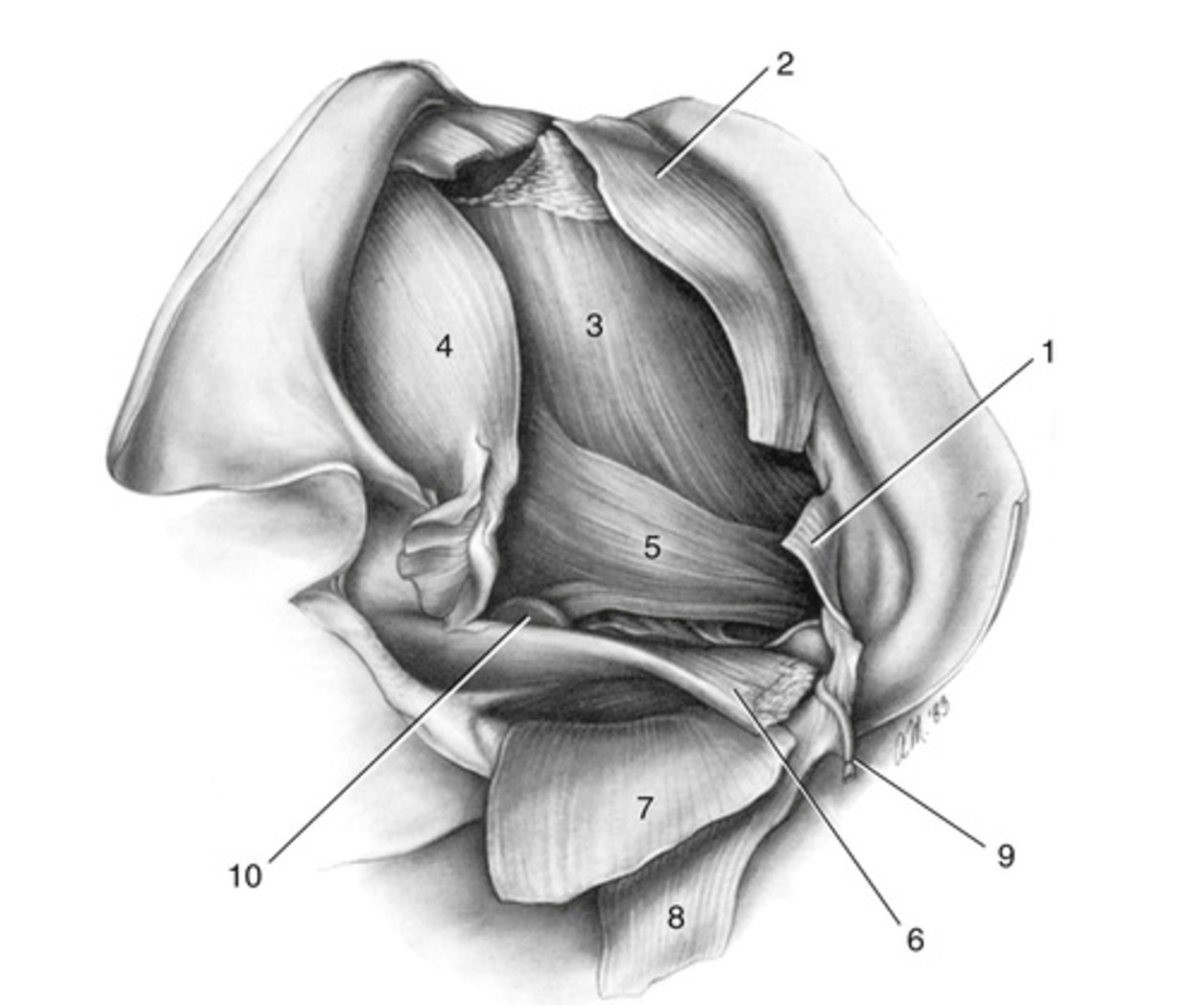 The thoracodorsal artery is located on the medial aspect of the muscle.