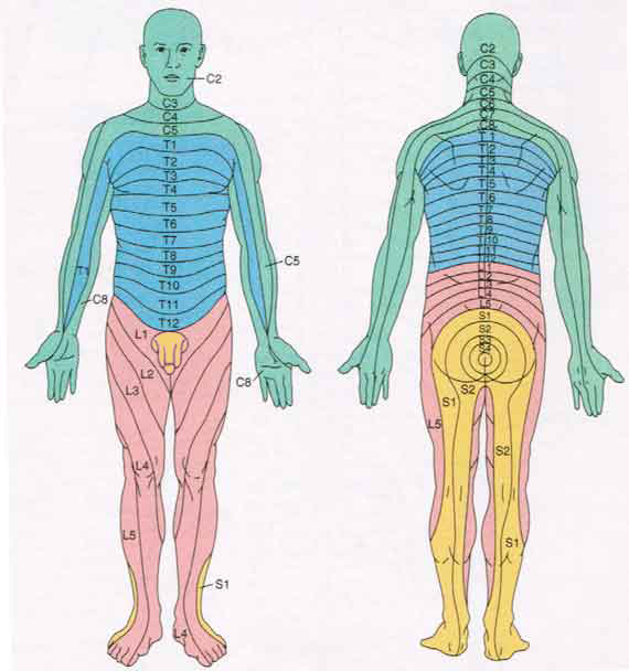 The earliest symptoms of herpes zoster, which include headache, fever, and malaise, are nonspecific, and may result in an incorrect diagnosis.[5][10] These symptoms are commonly followed by sensations of burning pain, itching, hyperesthesia (oversensitivity), or paresthesia (“pins and needles”: tingling, pricking, or numbness).[11] The pain may be mild to extreme in the affected dermatome, with sensations that are often described as stinging, tingling, aching, numbing or throbbing, and can be interspersed with quick stabs of agonizing pain.[12]