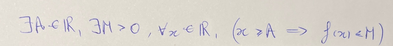 Écris la def rigoureuse de f bornée au voisinage de l’infini