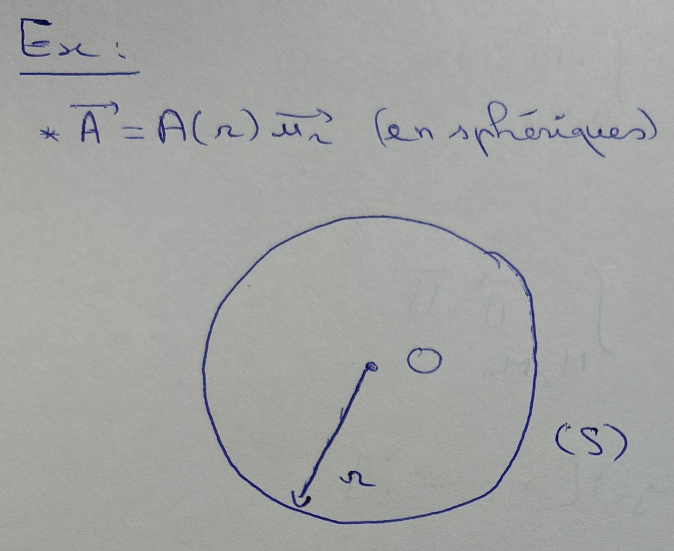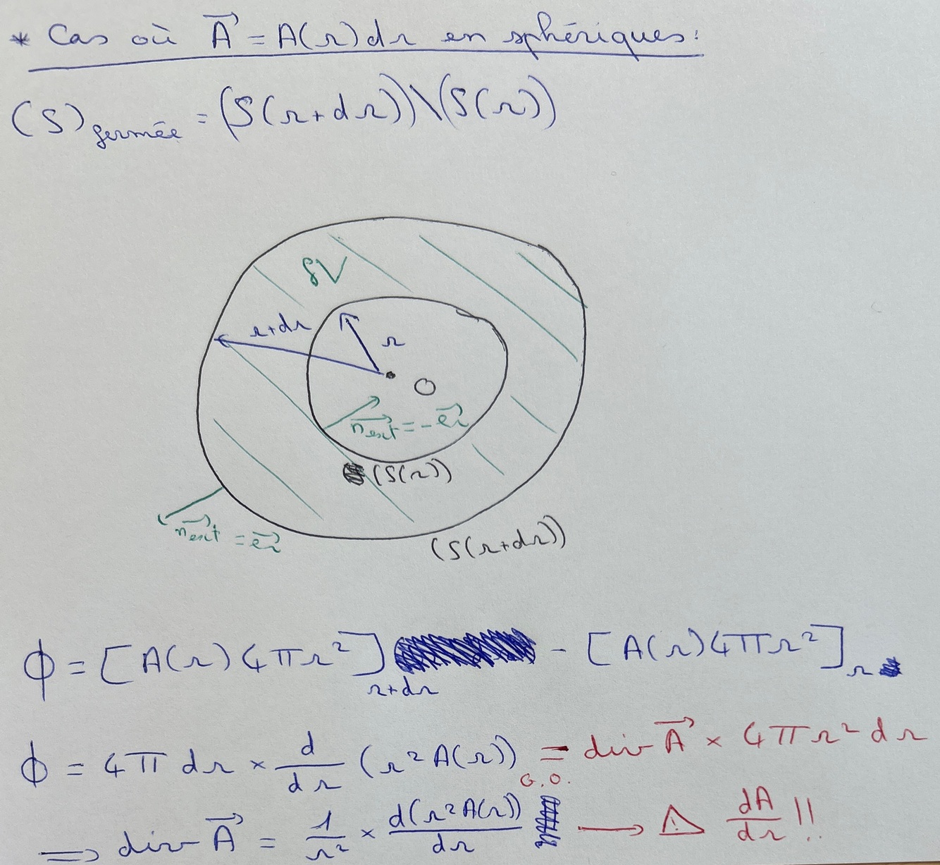 Démontrer l’expression de la divergence en sphériques, dans le cas où A# = A(r).er#
