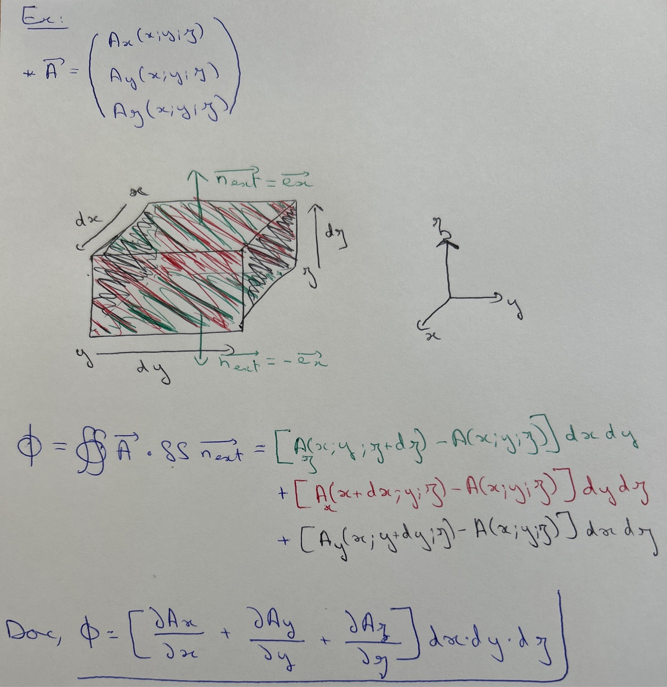 Calculer le flux de A# à travers le parallélépipède