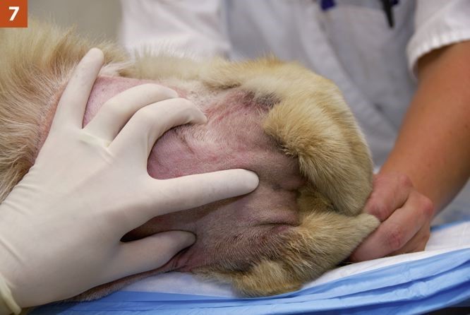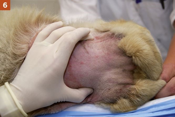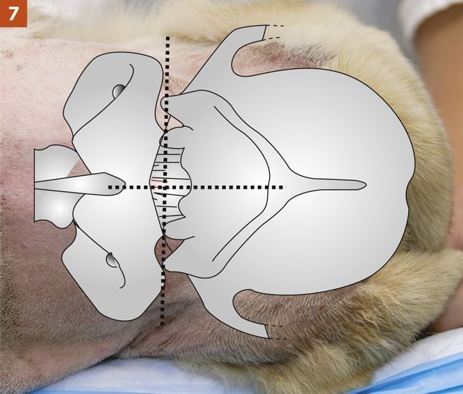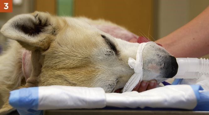 1. The animal should be placed under general anesthesia with a noncollapsing endotracheal tube in place to avoid occluding airflow during positioning for the procedure.