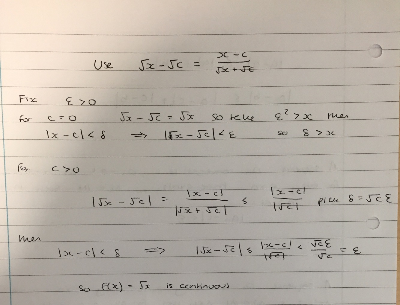 Lemma; Prove that f(x) = sqrt(x) is continous