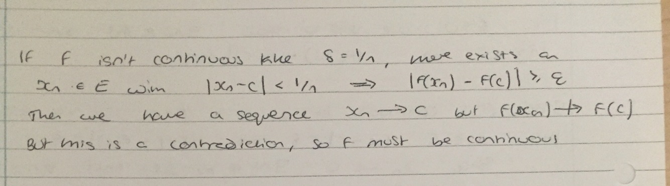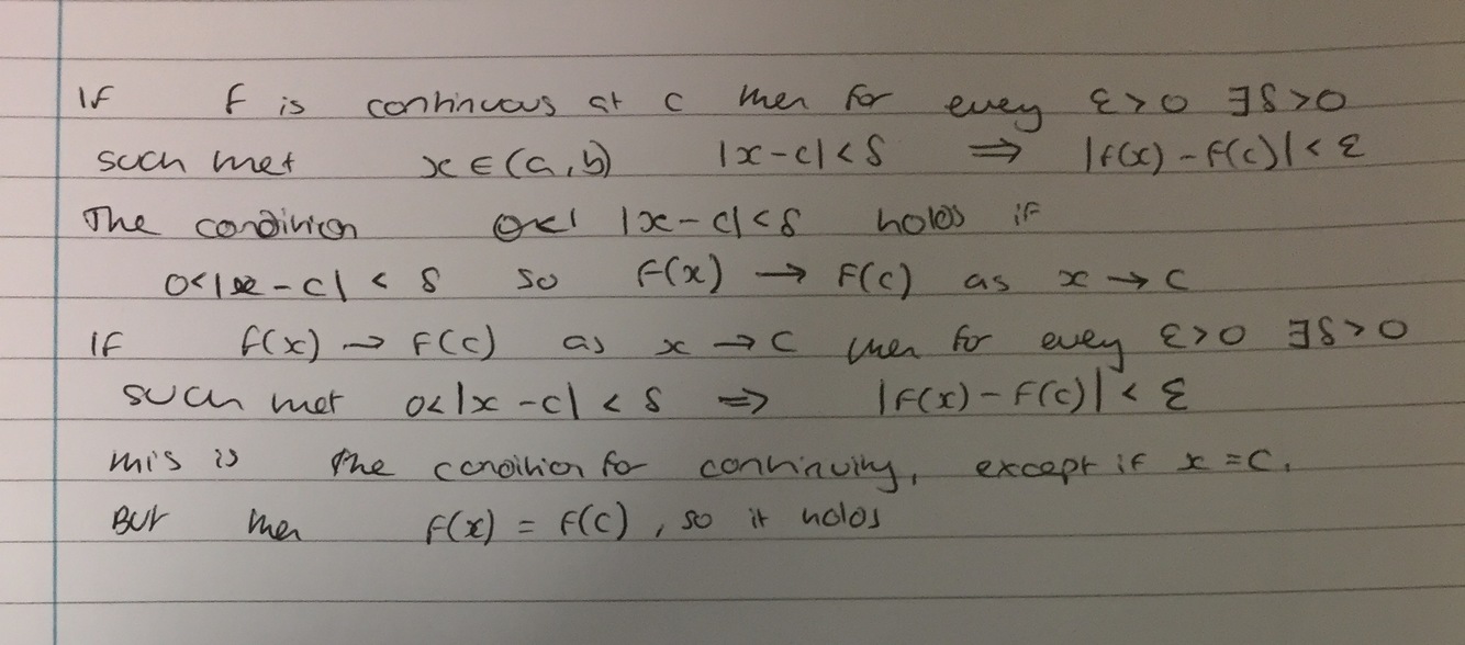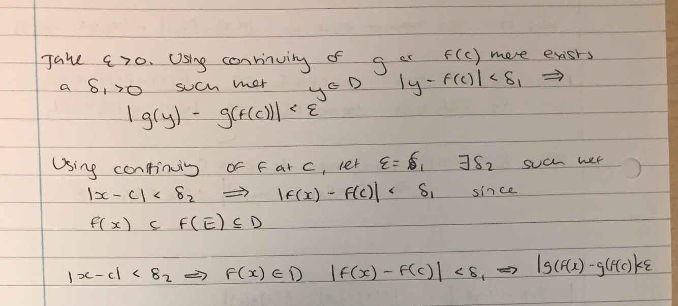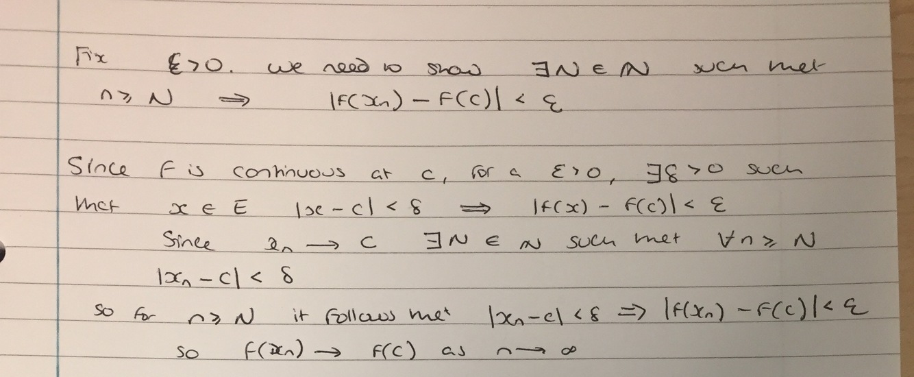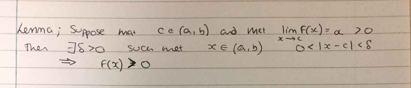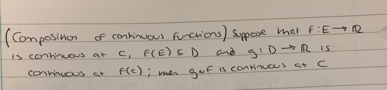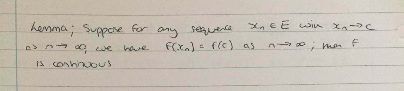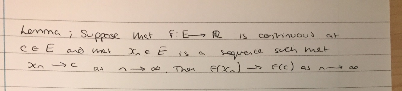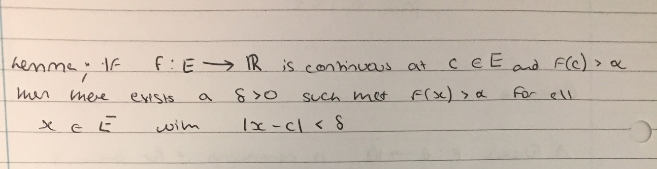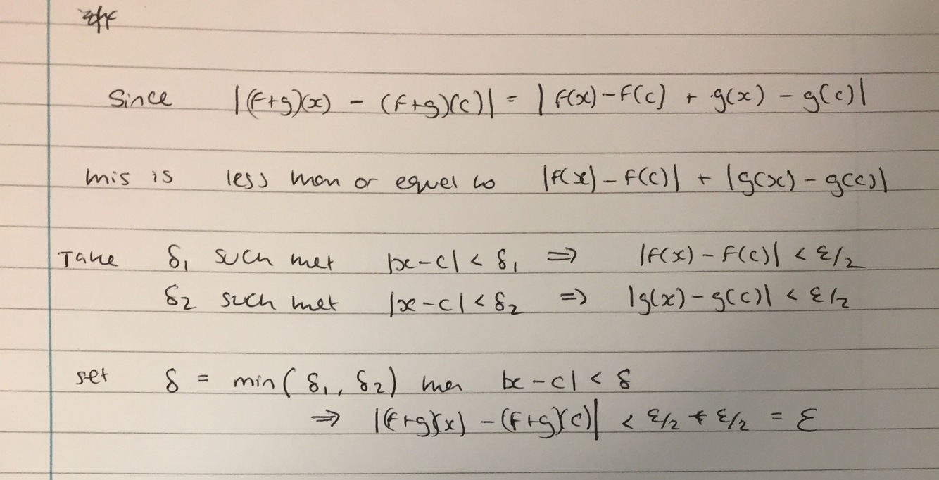Lemma; If f,g: E to R are continuous at c then f+g is continuous at c