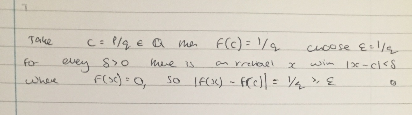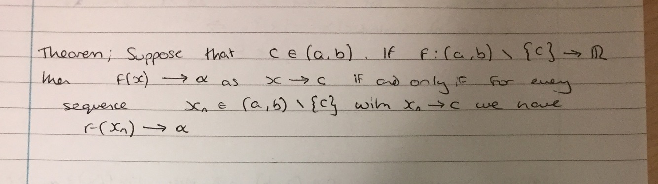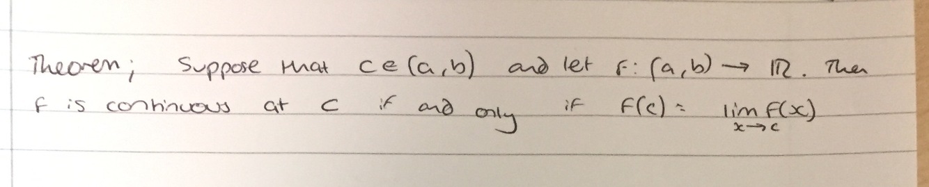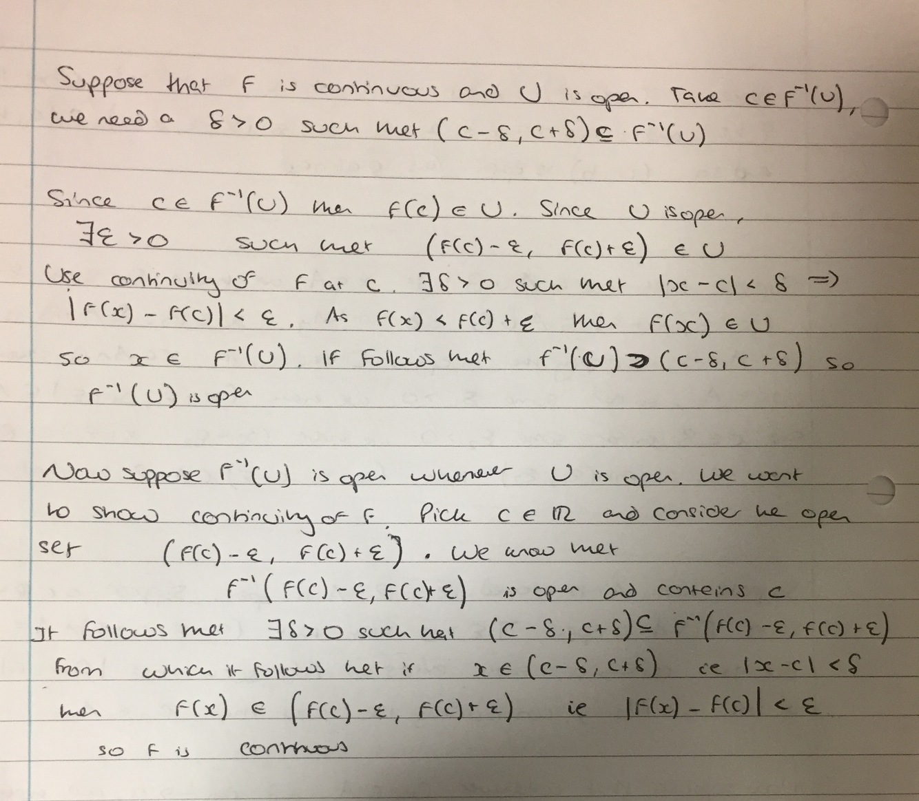 Lemma; A function f:R to R is continuous if and only if f-1U is open for every open set U in R