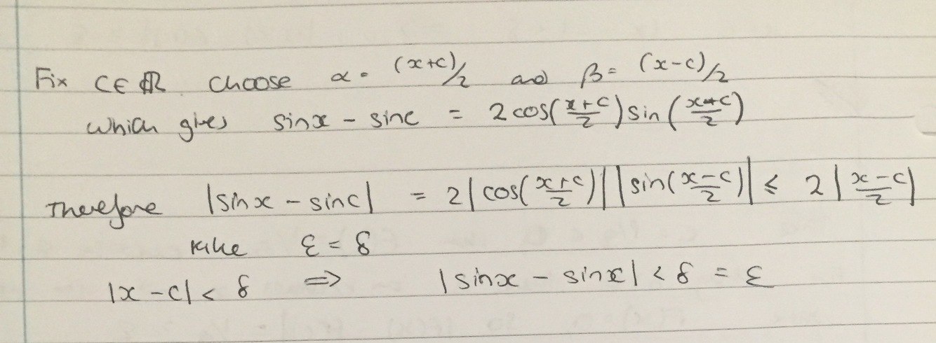 Theorem: The function f: R to [-1,1] given by f(x)=sinx is continuous