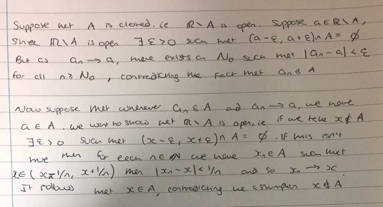 Lemma; A subset A of R is closed if and only if (an) in A with an tends to a implies that a is in A