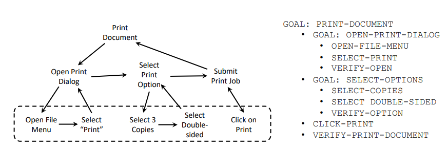 GOMS is a formal model that describes interactions in terms of Goals, Operators, Methods and Selection rules.