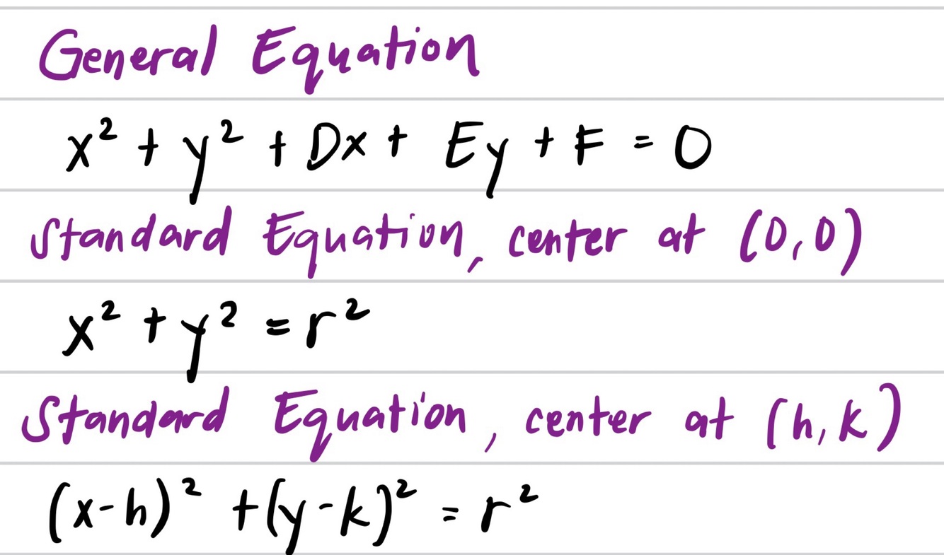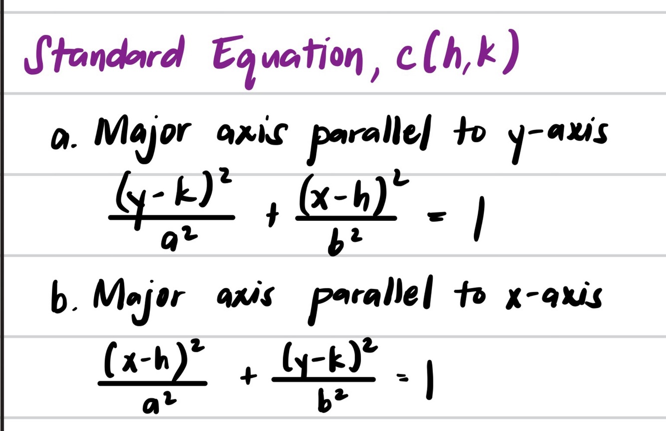 Standard Equation, center at (h,k)