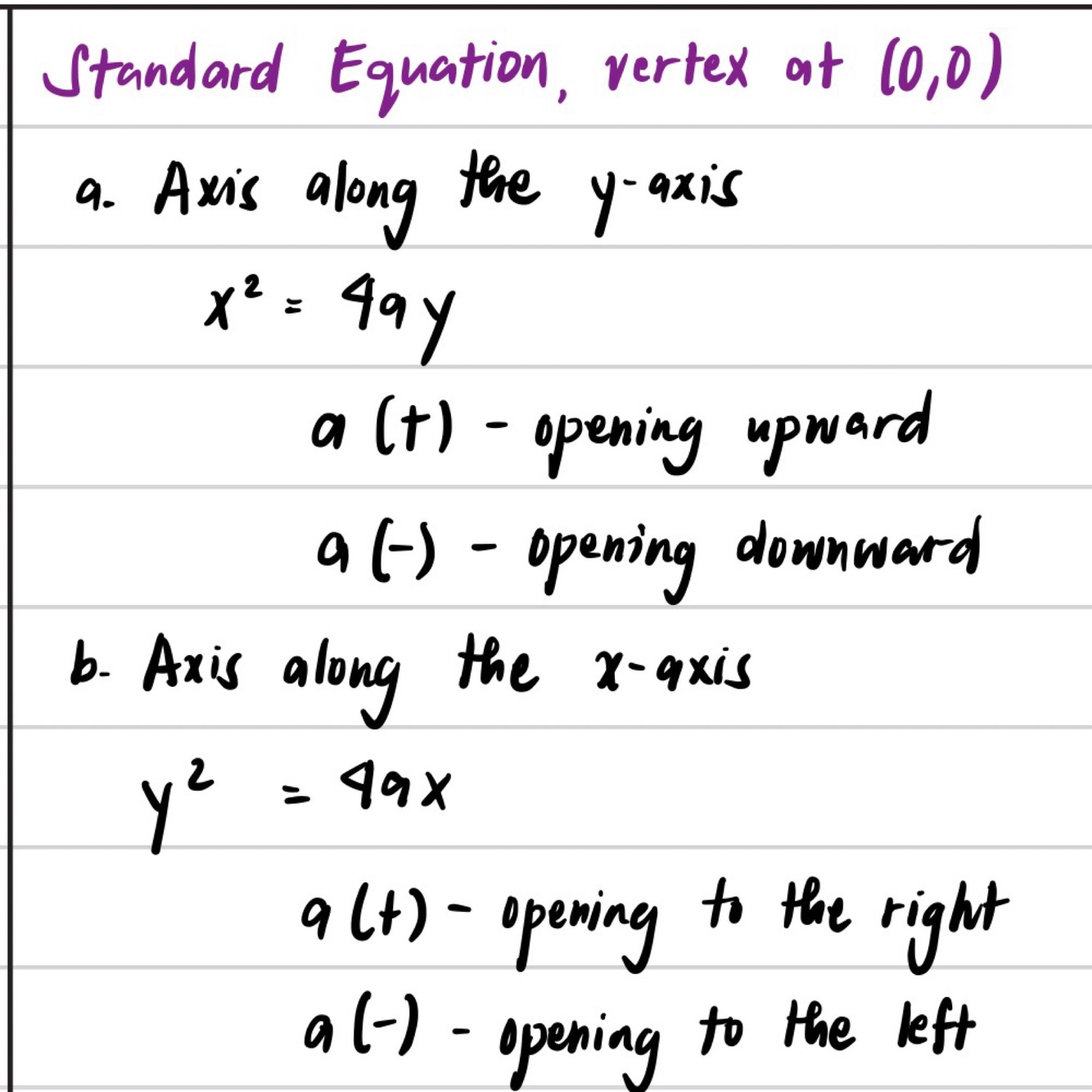 Standard Equation, vertex at (0,0)