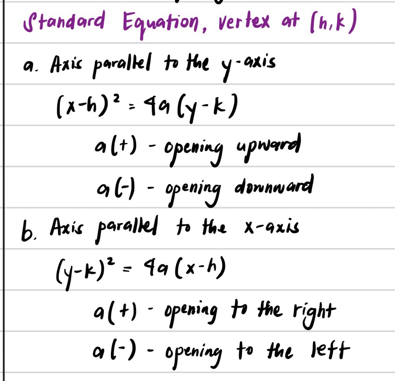 Standard Equation, vertex at (h,k)