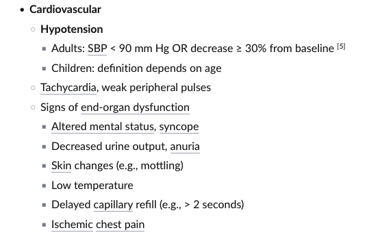 * Tachycardia/hypotension/shock