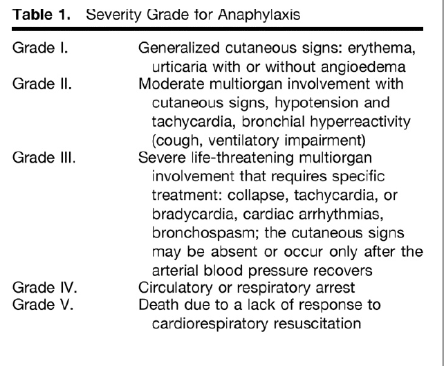 Grades of anaphylaxis