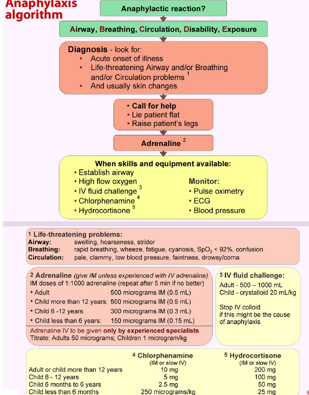 Treatment algorithm for anaphylaxis
