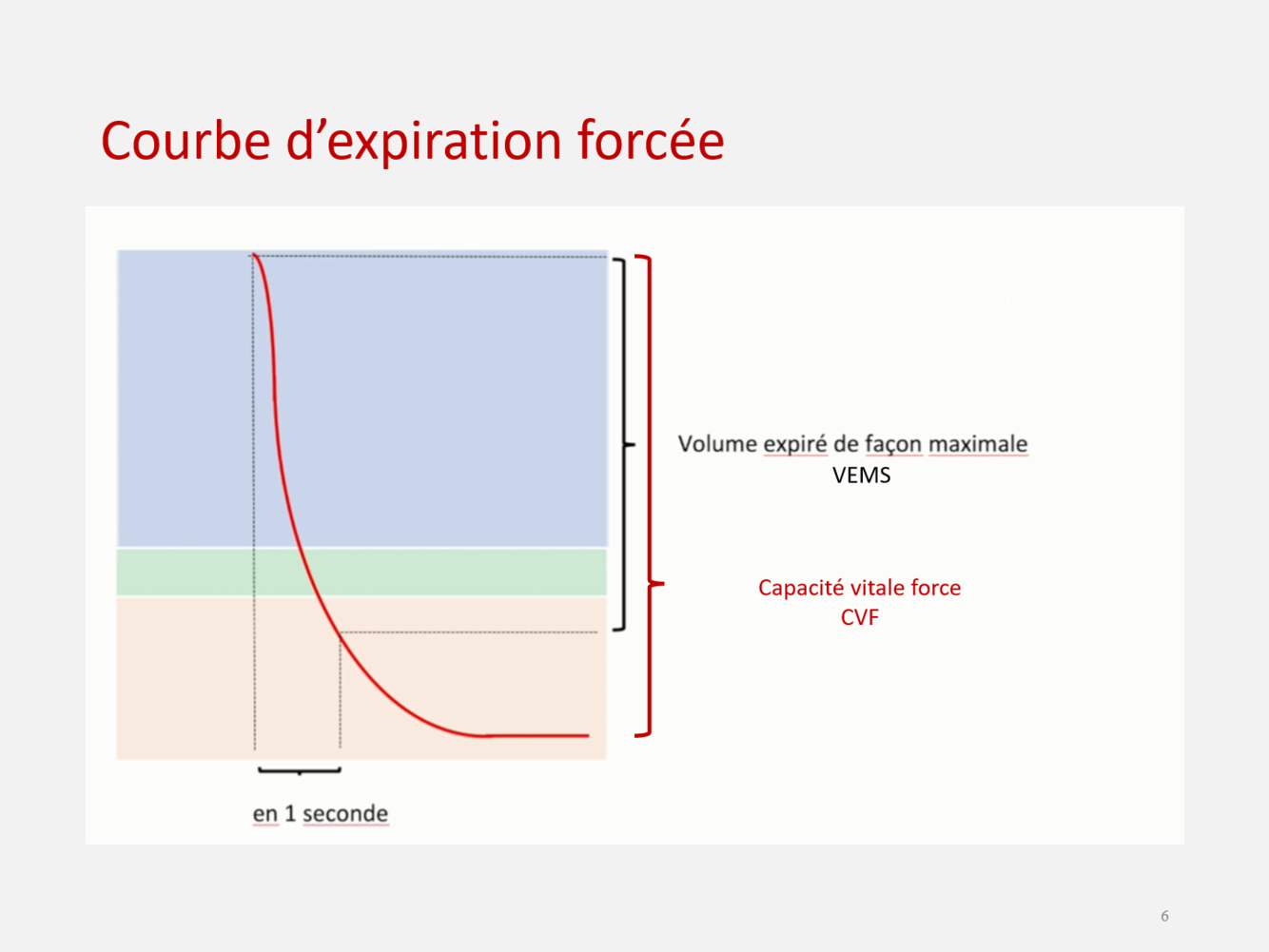 Dans le cas de pathologie pulmonaire, on observe que la courbe d’expiration forcée est moins à pic ou plus à pic