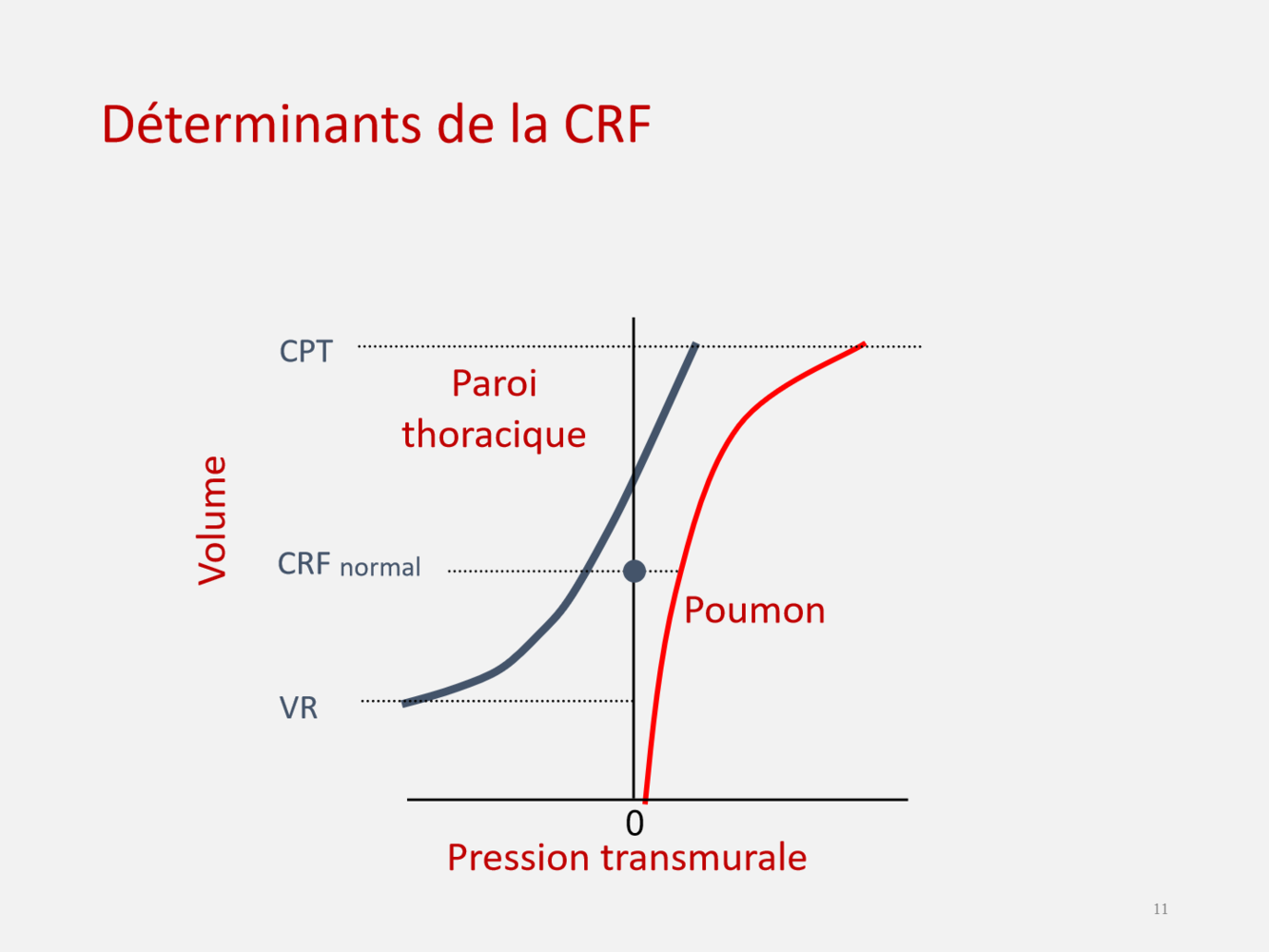 Système respiratoire est au repos (pression générée par paroi thoracique = pression générée par les poumons… dépend de la compliance du système, de la paroi thoracique et du système pulmonaire)