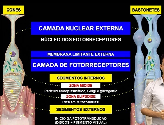 Bastonetes- mais finos e longos ,120um de comprimento