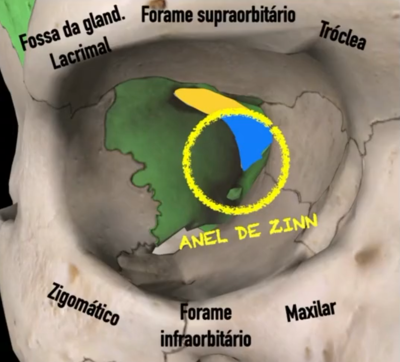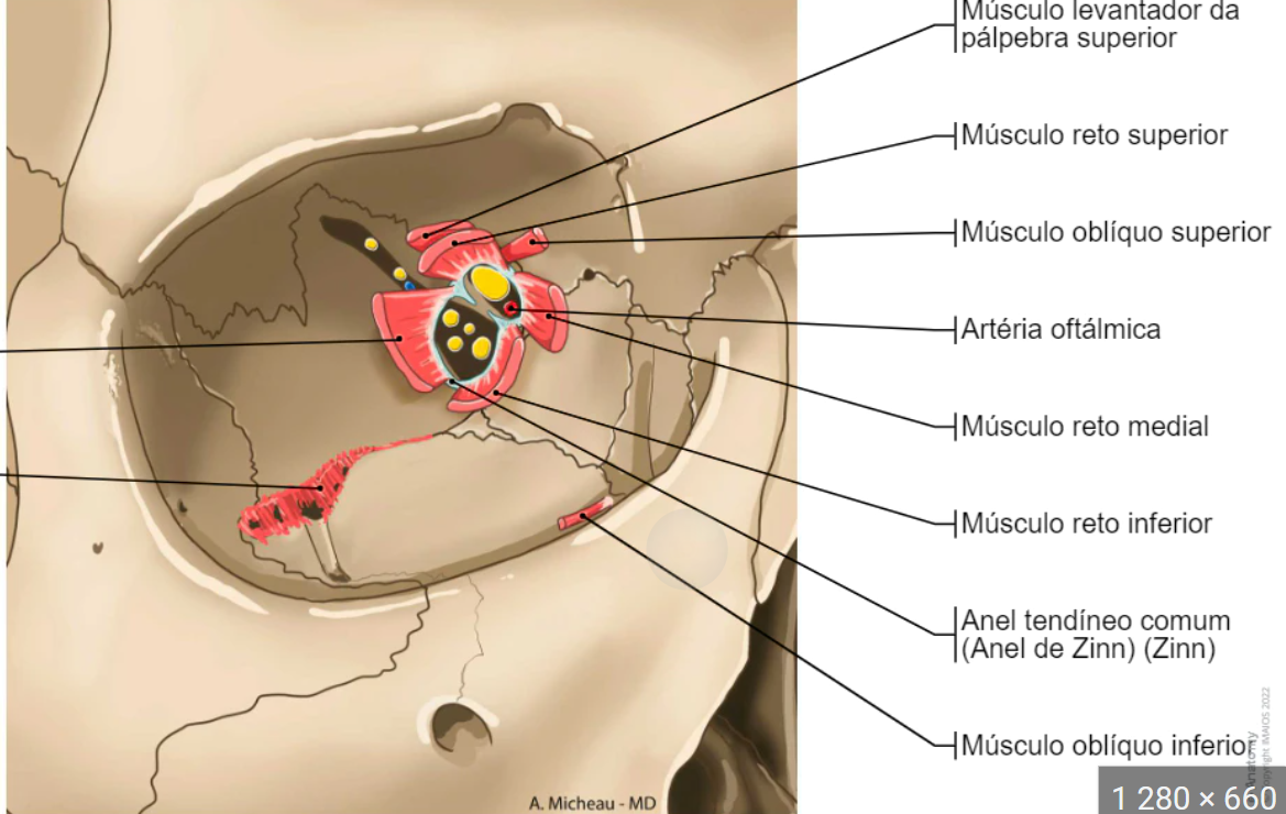 Anel tendinoso nas asas maior e menor do esfenóide sendo origem de todos os músculos retos.